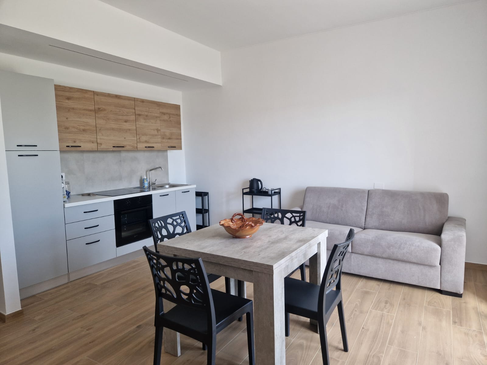 è il nostro trilocale composto da: una cucina completamente attrezzata/soggiorno con divano letto, un bagno con doccia e lavatrice, una camera matrimoniale e una cameretta con due letti singoli.